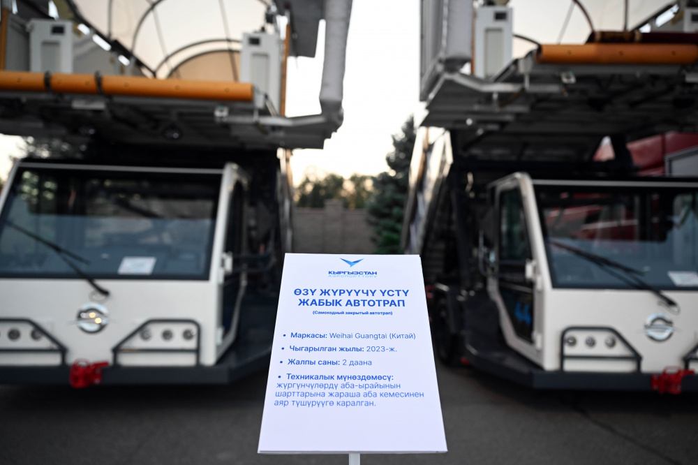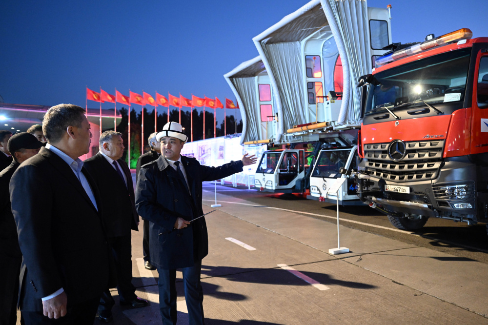 Президент также ознакомился с новой специальной техникой ОАО "Аэропорты Кыргызстана", закупленной с 2023 года.