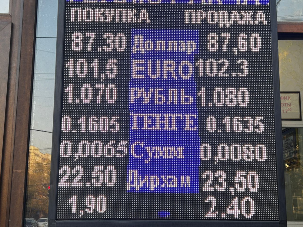У рубля тоже есть изменения. Цена его покупки сейчас - 1,06-1,07 сома, продажи - 1,08-1,09.