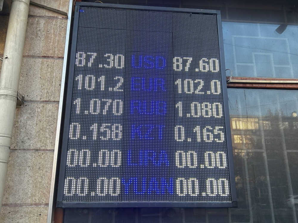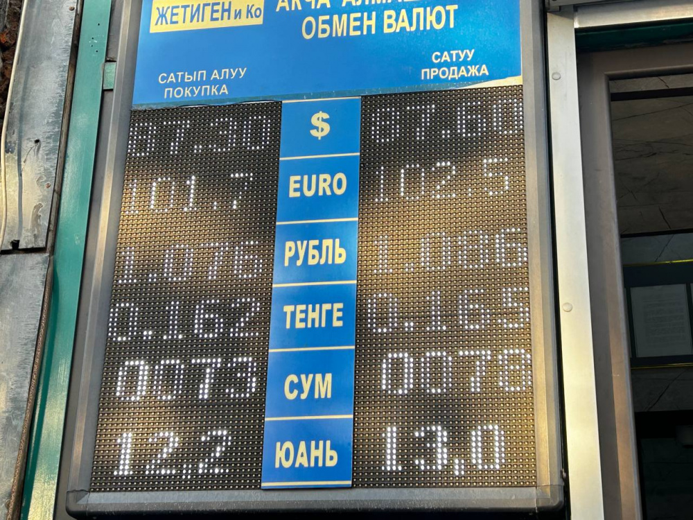 Рубль ослаб относительно сома. Цена его покупки - 1,05-1,07 сома, продажи - 1,06-1,08.