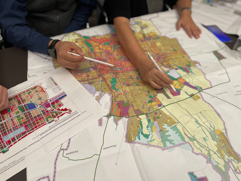 В ходе встречи обсудили ключевые разделы проекта - функциональное зонирование, развитие социальной и транспортной инфраструктуры, а также экологические аспекты.