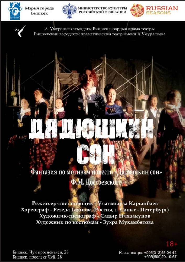 7, 8 и 9 ноября в Бишкекском городском драматическом театре им. А. Умуралиева состоится премьера спектакля "Дядюшкин сон" по мотивам одноименной повести Федора Достоевского.