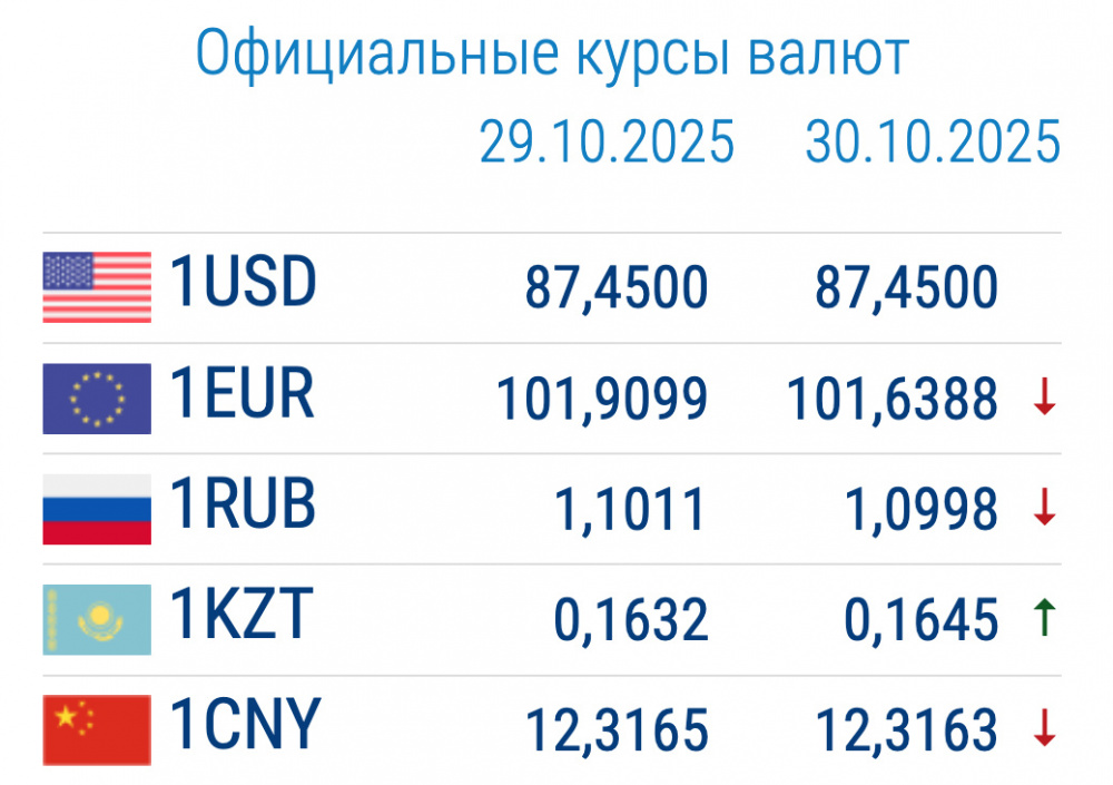 Курс иностранной валюты Нацбанка Кыргызстана на 30 октября выглядит следующим образом: