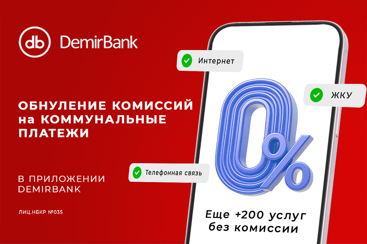 "Мы стремимся сделать все финансовые операции максимально простыми и выгодными для клиентов. Отмена комиссии за коммунальные платежи - это очередной шаг к созданию комфортной цифровой экосистемы DemirBank", - отметили в пресс-службе банка.