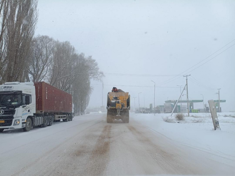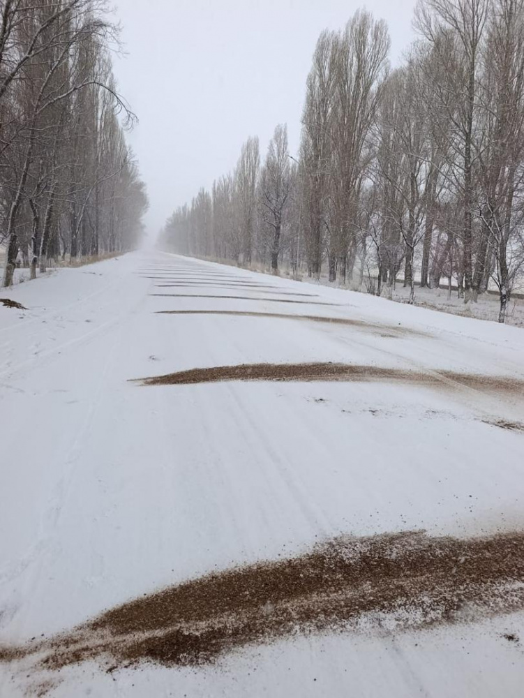 Как сообщается, государственные предприятия "Кыргызавтожол-Юг" и "Кыргызавтожол-Север" проводят работы по посыпке дорог песчано-соляной смесью.
