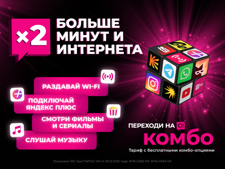 О! удвоил гигабайты и минуты – тарифы "Переходи на О! Комбо" стали еще выгоднее