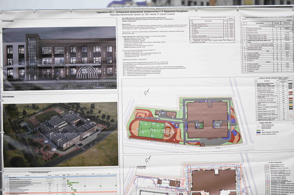 В Бишкеке Касымалиеву и Оверчуку представили проект учебного заведения. Его проектная мощность составит 1 224 места, площадь участка - 3 гектара. Сметная стоимость строительства по проекту - 35,4 млн сомов.