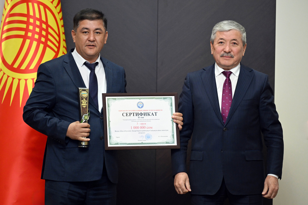 • 3-е место - айыл окмоту айылного аймака Сайдыкум, Базар-Коргонского района Джалал-Абадской области с призом в 1 млн сомов.