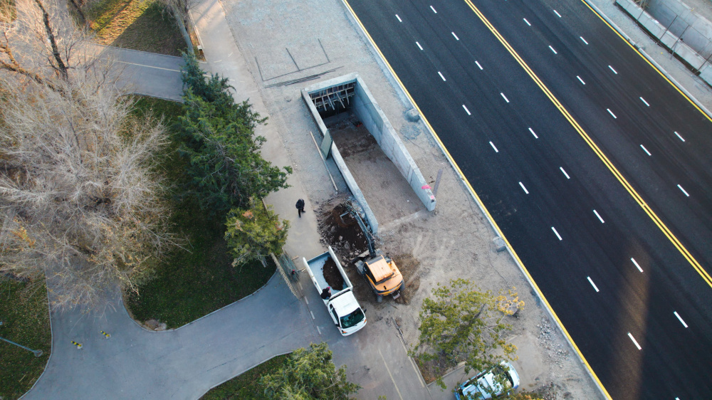 На проспекте Чингиза Айтматова идет строительство подземного перехода. В настоящее время основные работы завершены, однако многое еще предстоит сделать: установить лестницы, провести освещение, благоустроить участок. Работы ведутся в ускоренном порядке.