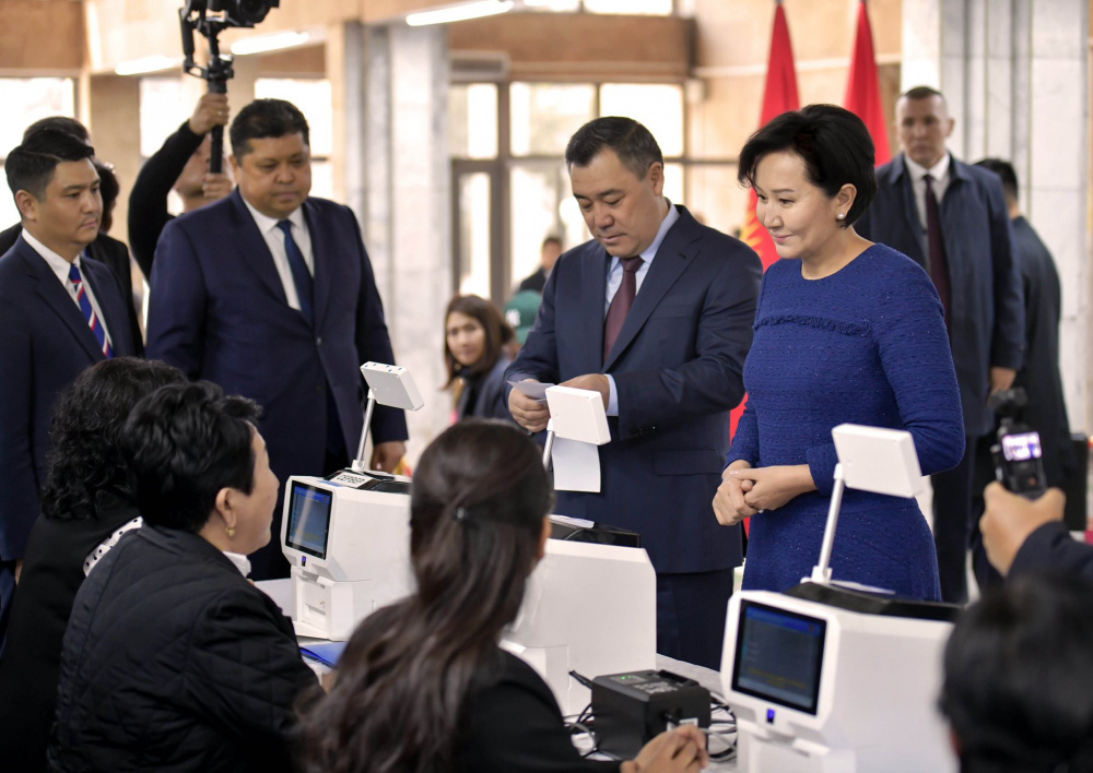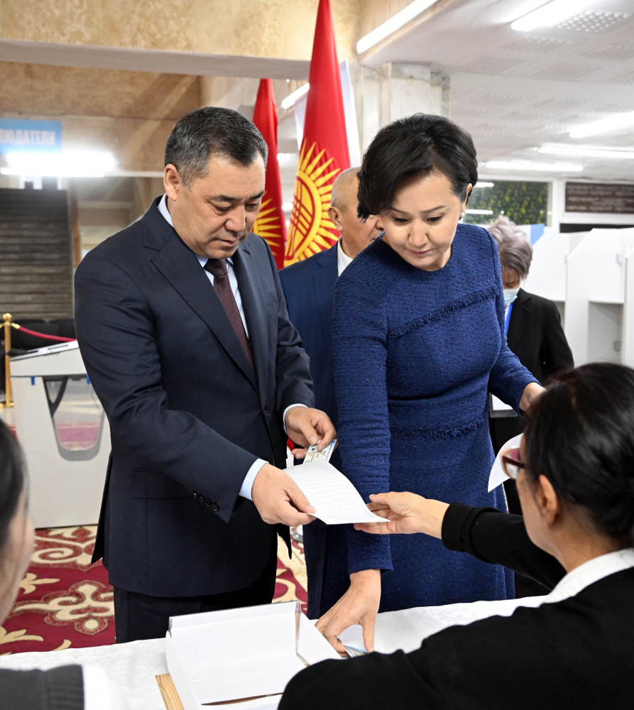 Президент Садыр Жапаров и первая леди Айгуль Жапарова 30 ноября приняли участие в досрочных выборах депутатов Жогорку Кенеша.