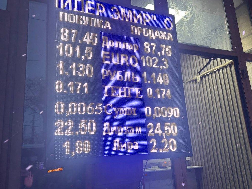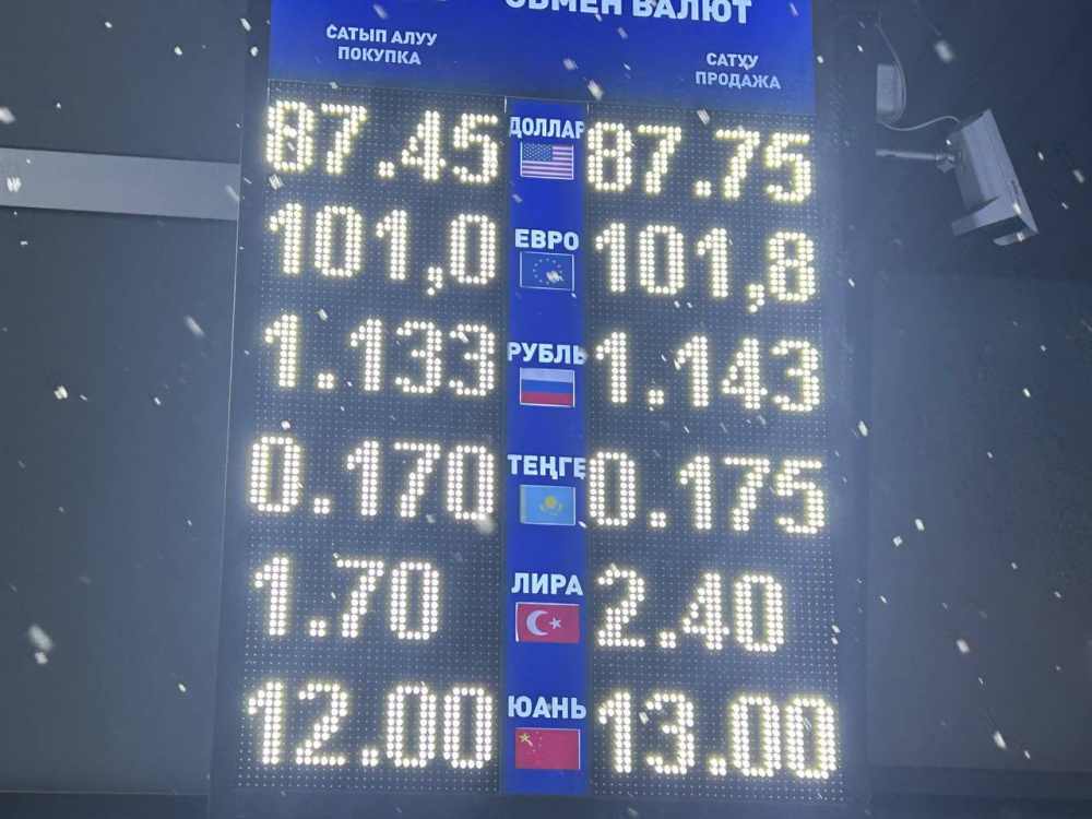 Доллар по-прежнему стабилен. Цена его покупки - 87,45 сома, продажи - 87,75.