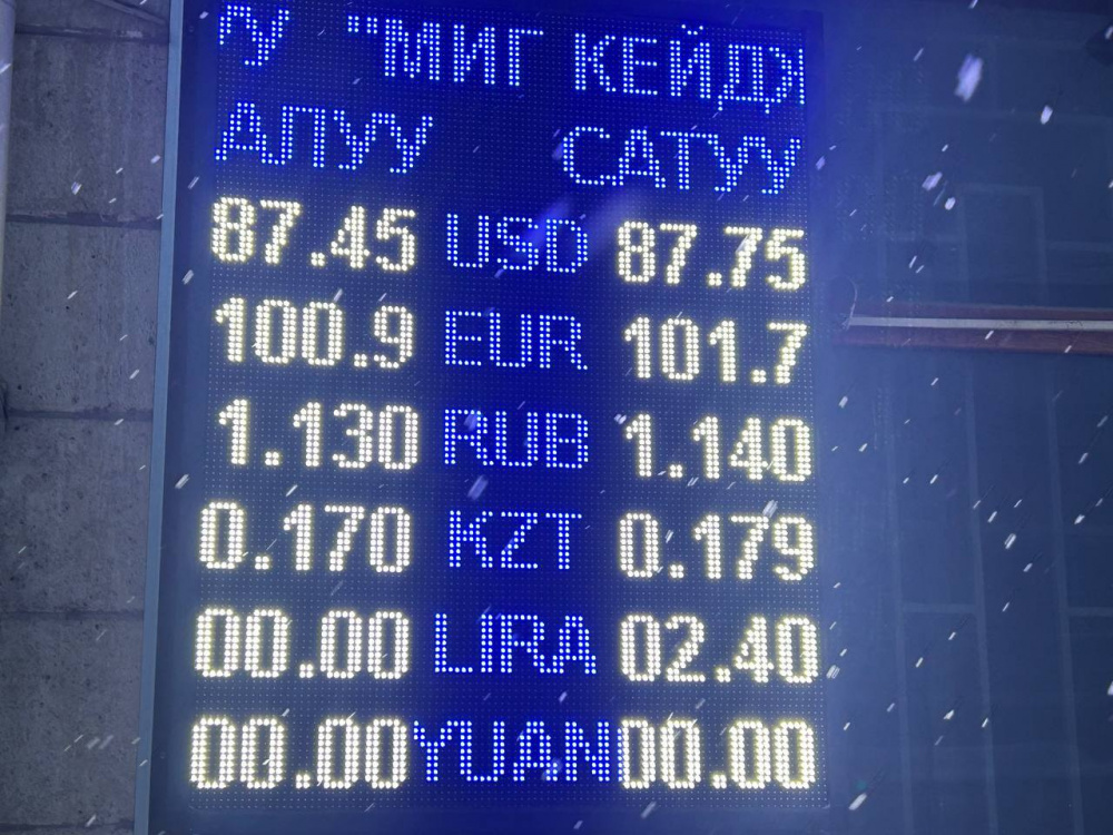 Курс рубля чуть снизился. При покупке он стоит 1,12-1,13 сома, при продаже - 1,13-1,14.
