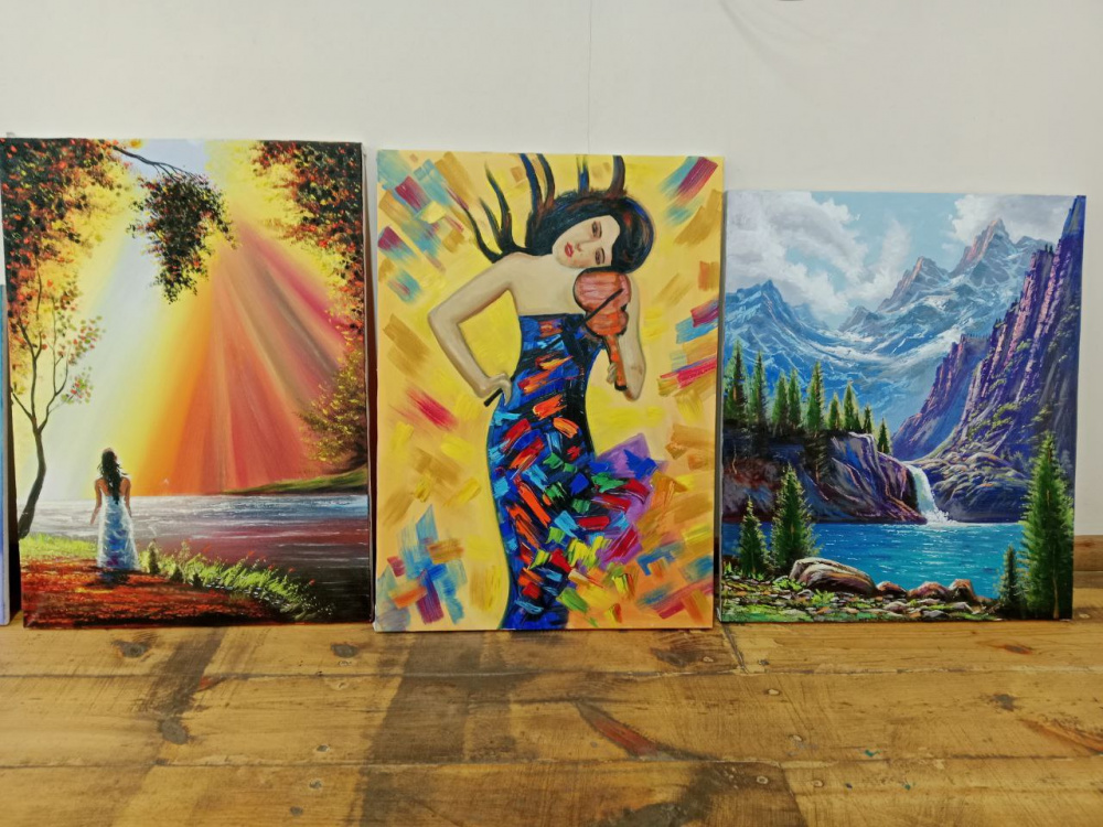 Но до сих пор пишу картины - по вдохновению. Бывает разное настроение, но в основном пейзажи. Это помогает, когда мысли, идею хочешь воплотить на холсте. Это здорово! Особенно когда людям нравится - это внутреннее удовлетворение. Фонд помогает продавать картины: предлагают знакомым, в соцсетях - люди покупают.