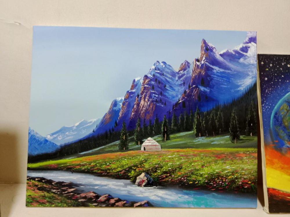 Помочь Акжолу и купить его картины можно, связавшись с фондом "Фонтан жизни". Телефоны: +996 0312 371 645, 0508 371 645.