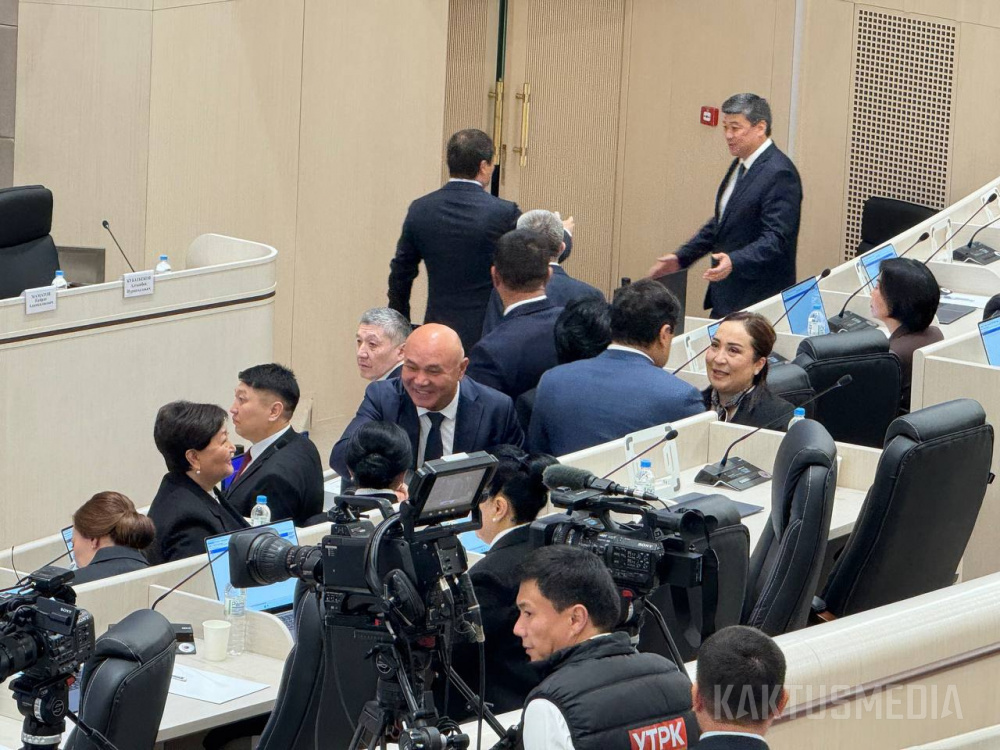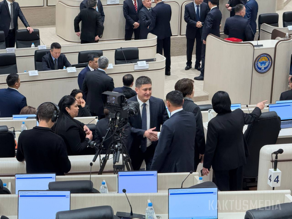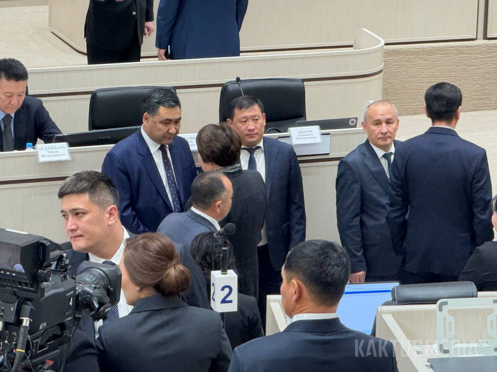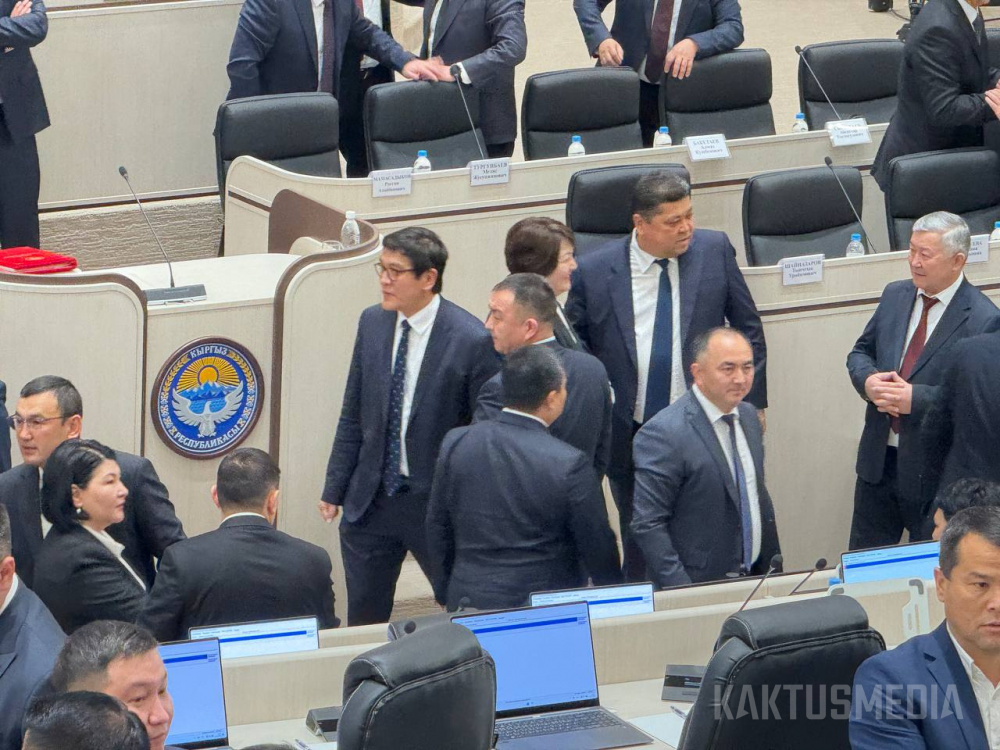 Кроме того, в зале заседаний парламента присутствуют глава кабинета министров Адылбек Касымалиев, члены кабмина и Центральной комиссии по выборам и проведению референдумов.