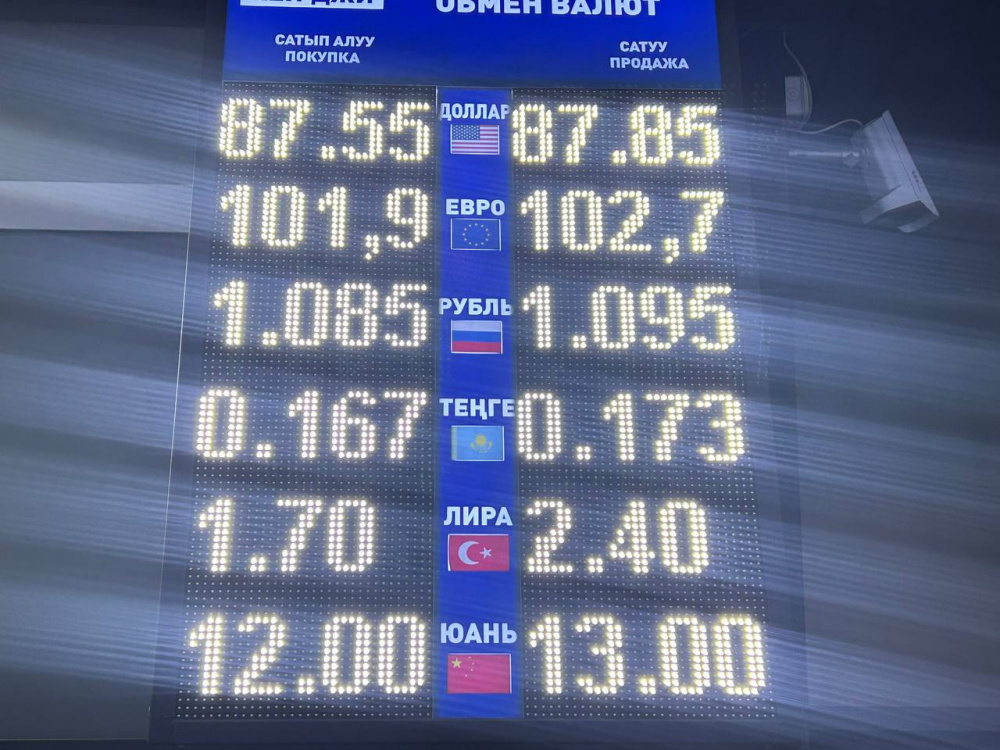 Курс доллара стабилен: покупка - по 87,55 сома, продажа - по 87,85.