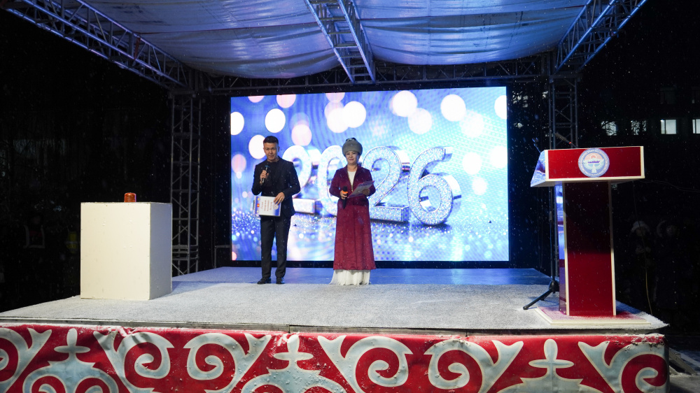 В торжественном мероприятии приняли участие полномочный представитель президента Эрмат Джумаев, мэр Таласа Нургазы Асылбеков, председатель Таласского городского кенеша Калыс Джаныбеков. Они поздравили жителей с наступающим Новым годом, а также официально открыли обновленную площадь.