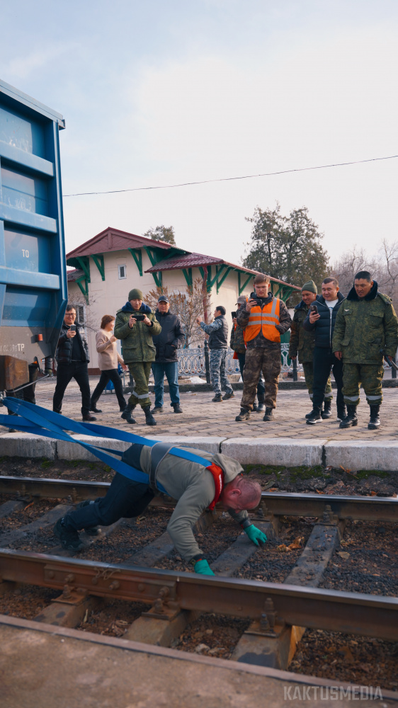 Есть рекорд. Спортсмен из Кыргызстана сдвинул семь полувагонов (видео)