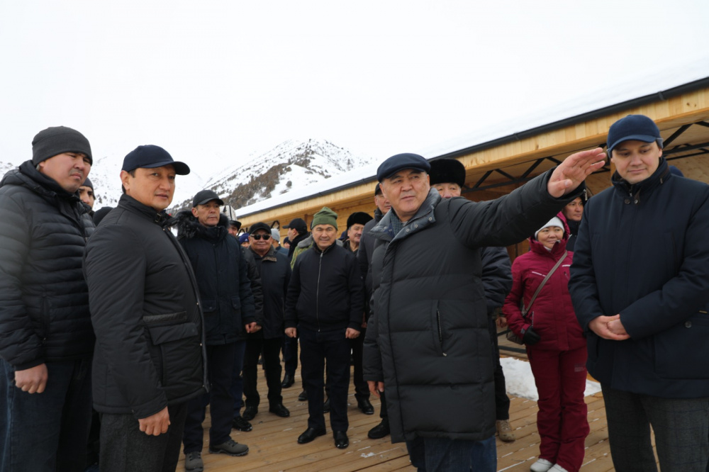 Затем глава ГКНБ перерезал символическую красную ленту и прогулялся по территории комплекса "Кызыл-Белес".