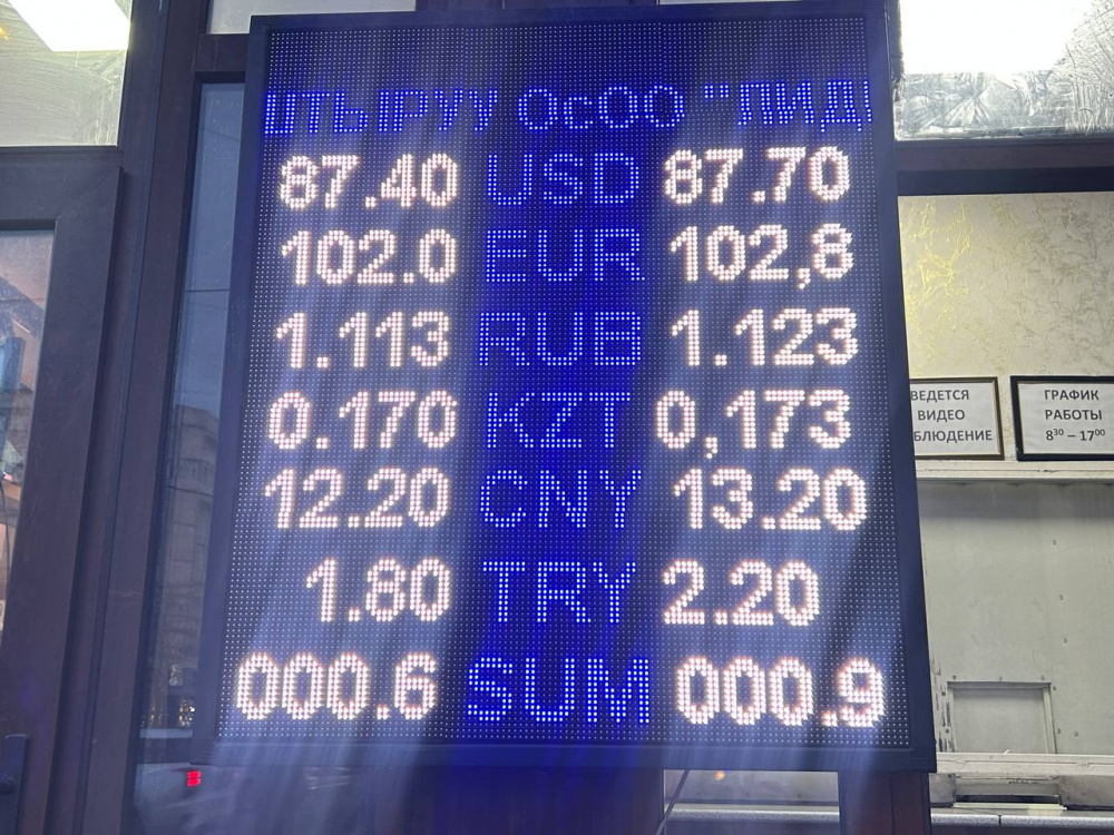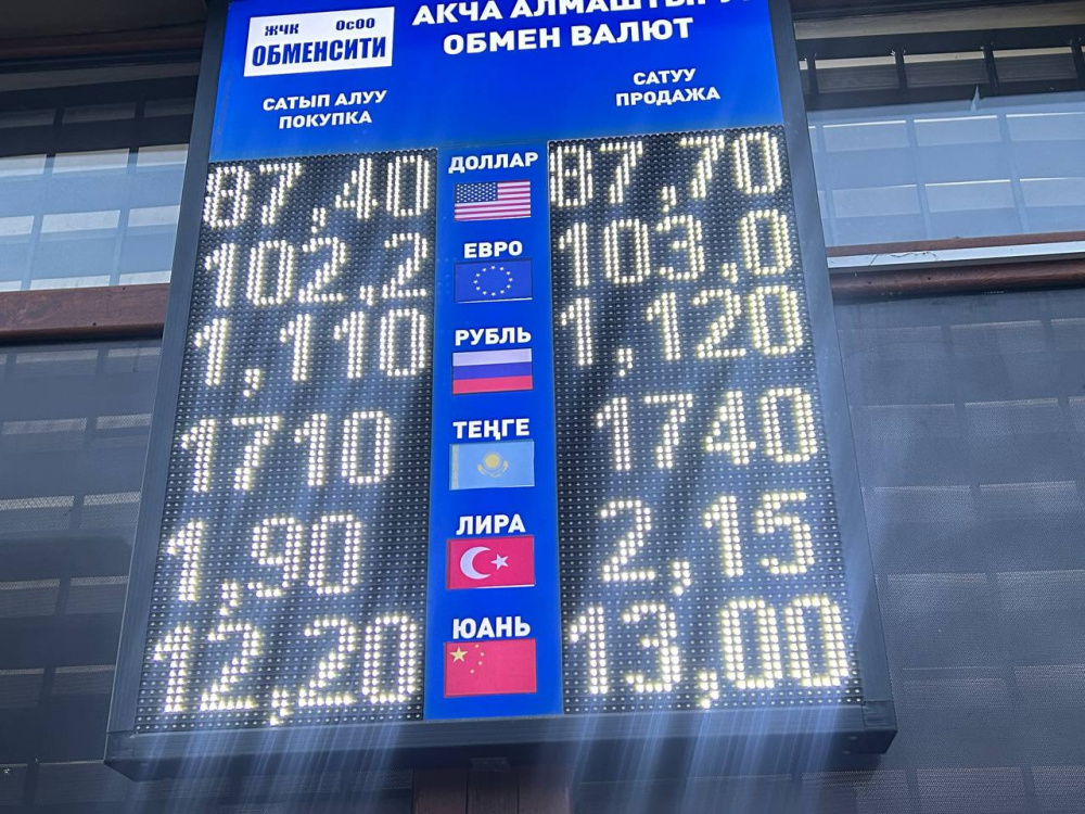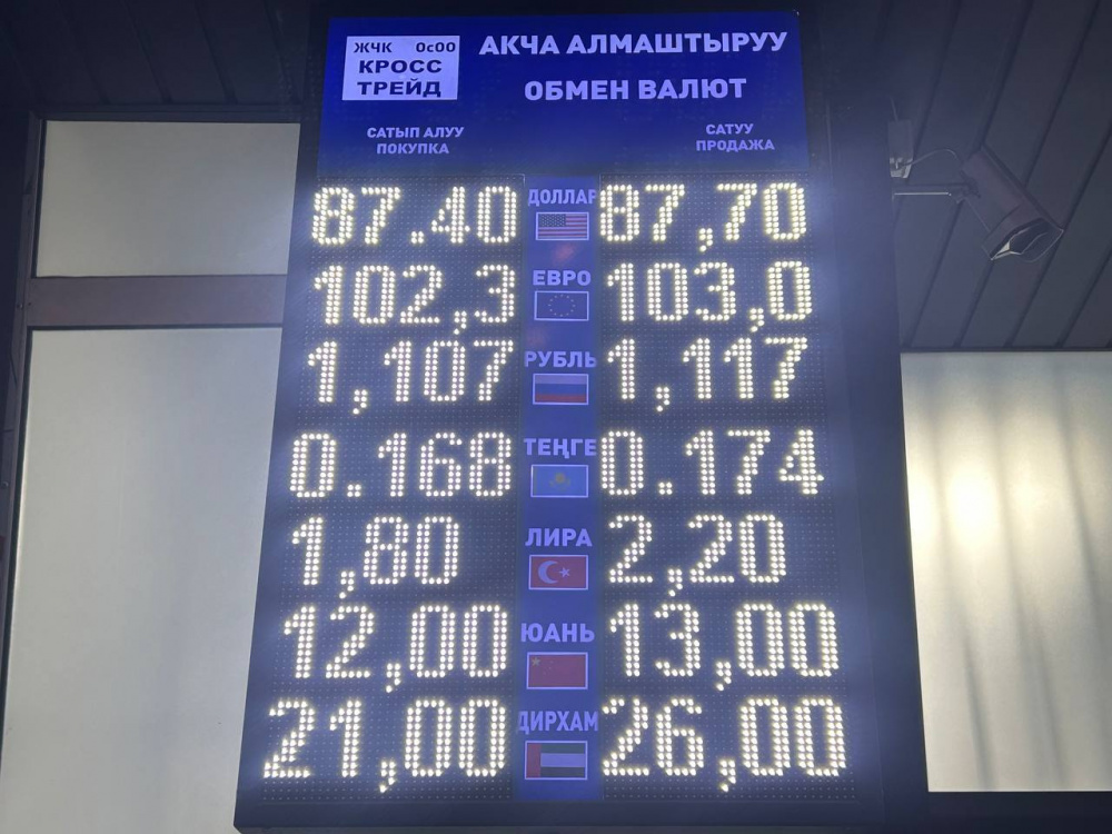 Курс доллара снизился: покупка - по 87,4 сома, продажа - по 87,7.