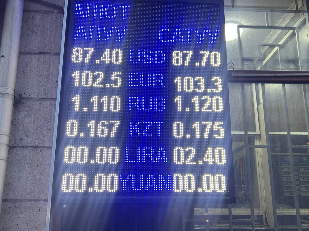 Евро также подешевел. Его покупают по 102,2-102,5 сома, а продают - по 103,0-103,3.