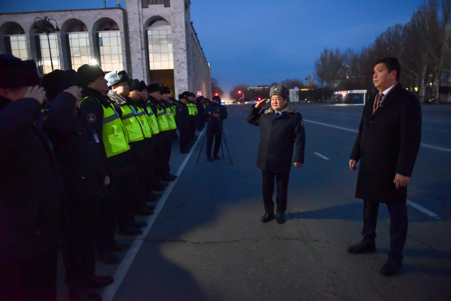 Сегодня, 29 декабря, в преддверии новогодних праздников на площади Ала-Тоо состоялось гарнизонное построение личного состава ГУВД Бишкека, задействованного в охране общественного порядка и обеспечении безопасности граждан. Об этом сообщает пресс-служба столичной мэрии.