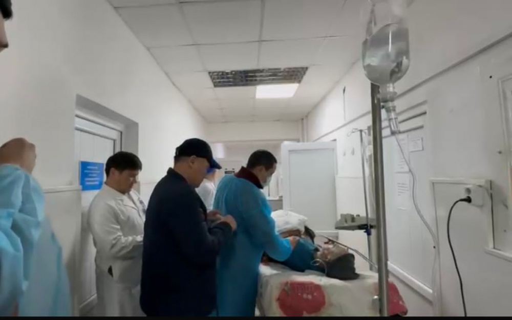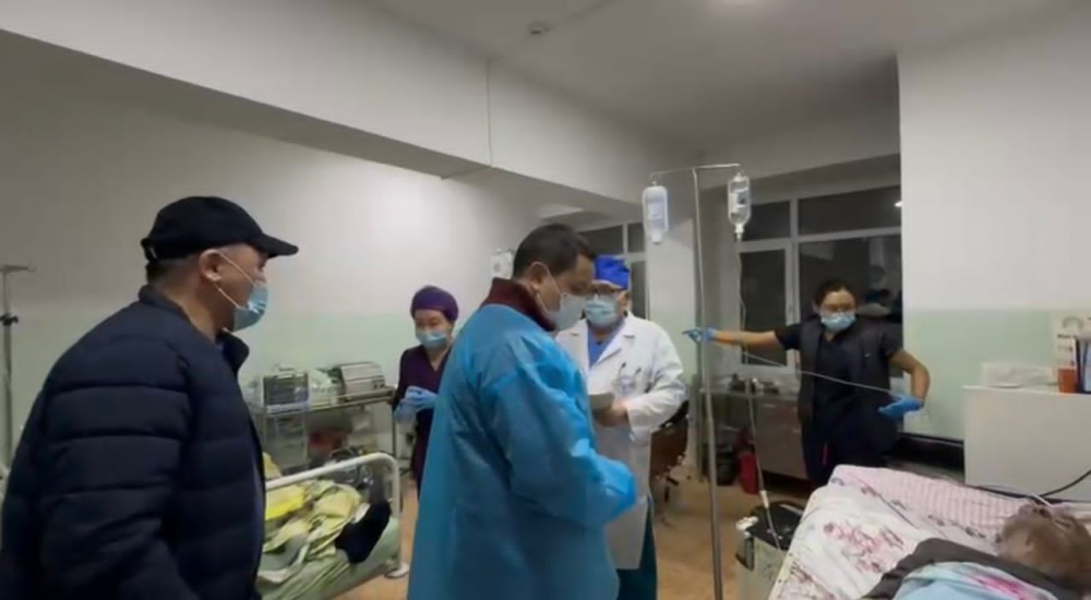 Министр здравоохранения Каныбек Досмамбетов посетил пострадавших, поступивших в результате пожара в доме престарелых.