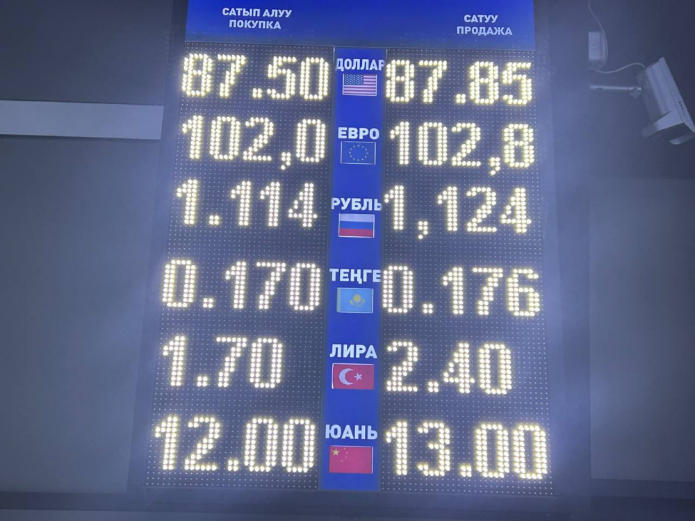 Цена на доллар не поменялась: покупка - по 87,5 сома, продажа - по 87,85.