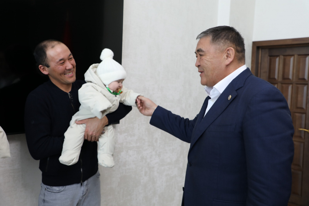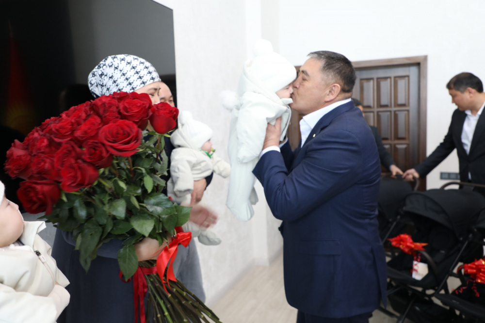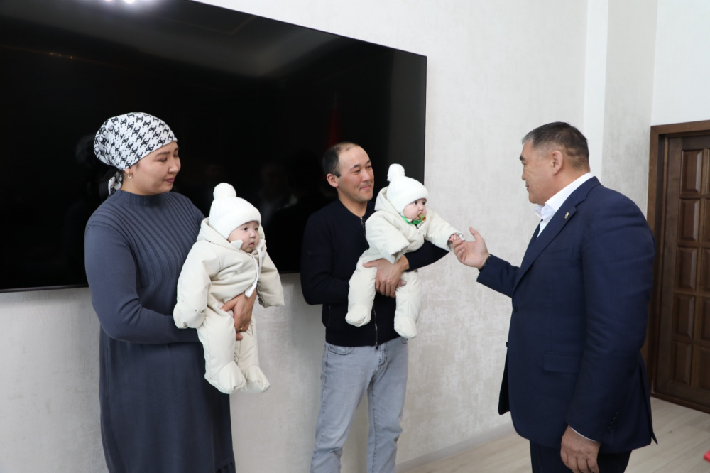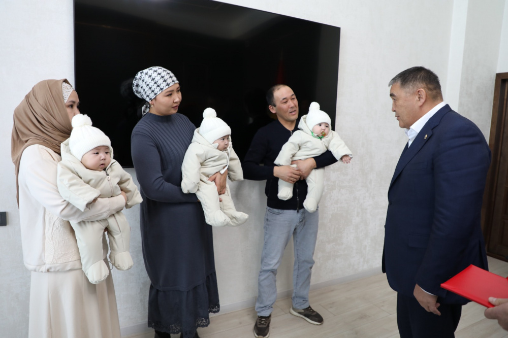 Камчыбек Ташиев лично вручил родителям тройняшек ключи от двухкомнатной квартиры (фото)