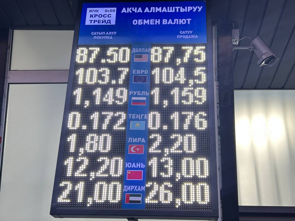 Доллар стоимости не поменял: покупка - по 87,5 сома, продажа - по 87,75.