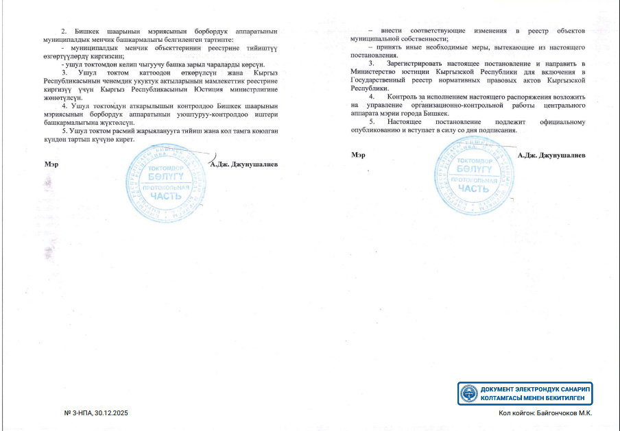 Мэрия Бишкека опубликовала постановление о принятии в муниципальную собственность объектов образования с согласия кабинета министров и профильных органов.