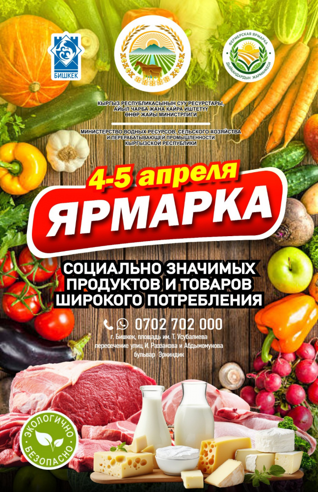 В Бишкеке и во всех регионах страны до июня 2026 года в определенные дни будут проводиться ярмарки местных производителей, фермеров и ремесленников, предлагающих социально значимые продовольственные товары. Об этом сообщает пресс-служба Минводсельпрома КР.