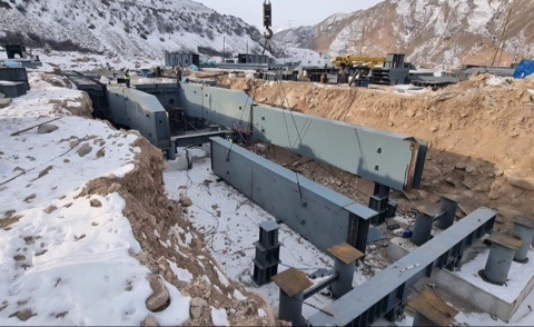 - мост через реку Нарын на правый берег створа Камбар-Атинской ГЭС-1 - завершено бетонирование четырех опор, идет монтаж металлических конструкций пролетов (общая длина моста более 180 м, готовность 50-60%);