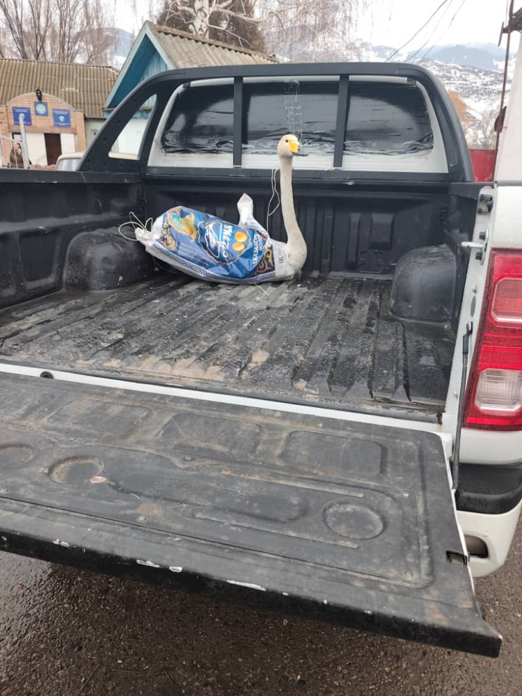По данным ведомства, лебедя нашли 16 февраля на пашне в селе Шабдан, примерно в двух километрах от территории Чон-Кеминского государственного природного парка. Местные жители поймали птицу и передали сотрудникам парка.