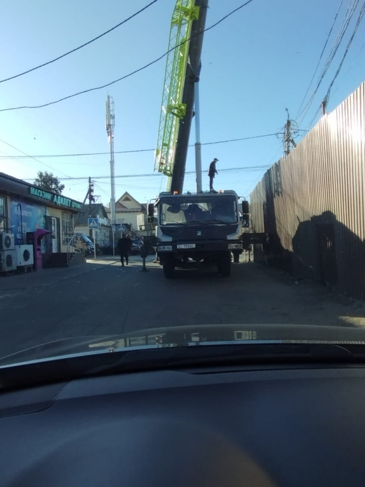 "На пересечении улиц Суванбердиева и Белорусской строительная компания закрыла часть тротуара для прохода. Также при разгрузке стройматериалов перекрывают проезжую часть дороги. Имеют ли они на это право? Хотели обратиться к ним напрямую, но на месте не вывесили паспорт объекта, название компании не знаем. Просим принять меры и прекратить этот хаос", - говорит он.