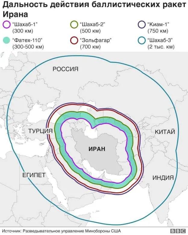 Помимо этого, у страны есть значительное количество ракет меньшей дальности - от 500 до 1 000 км. Они представляют угрозу прежде всего для стран Персидского залива.