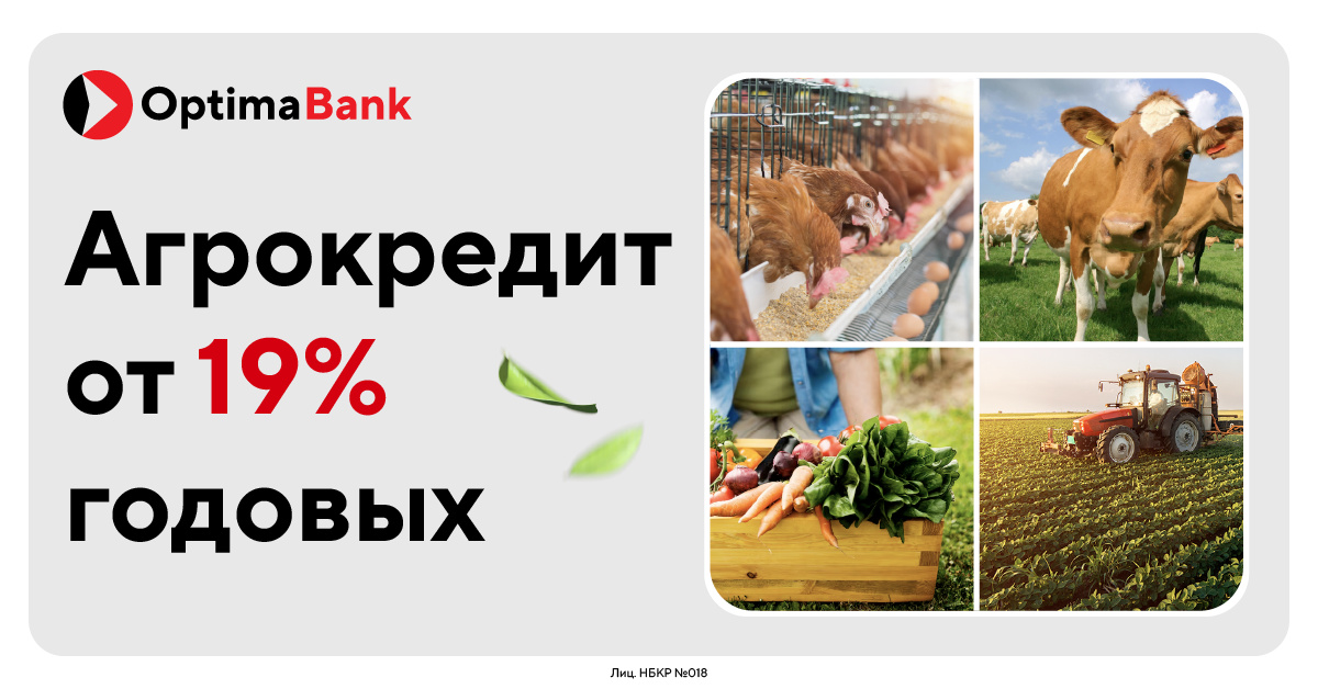"Оптима Банк" предлагает агрокредит от 19% годовых для развития сельского хозяйства.