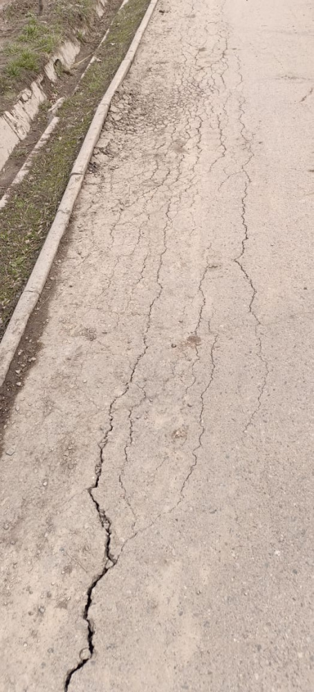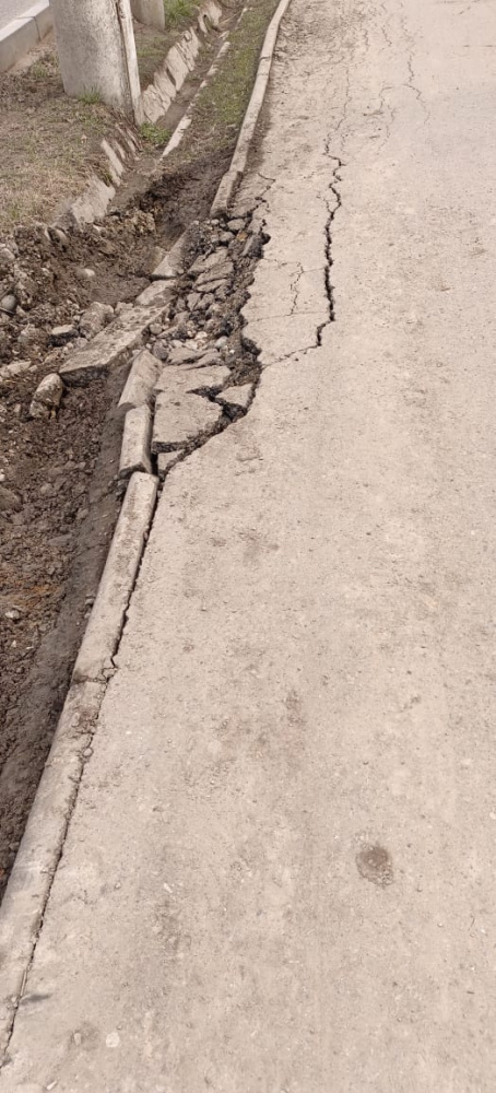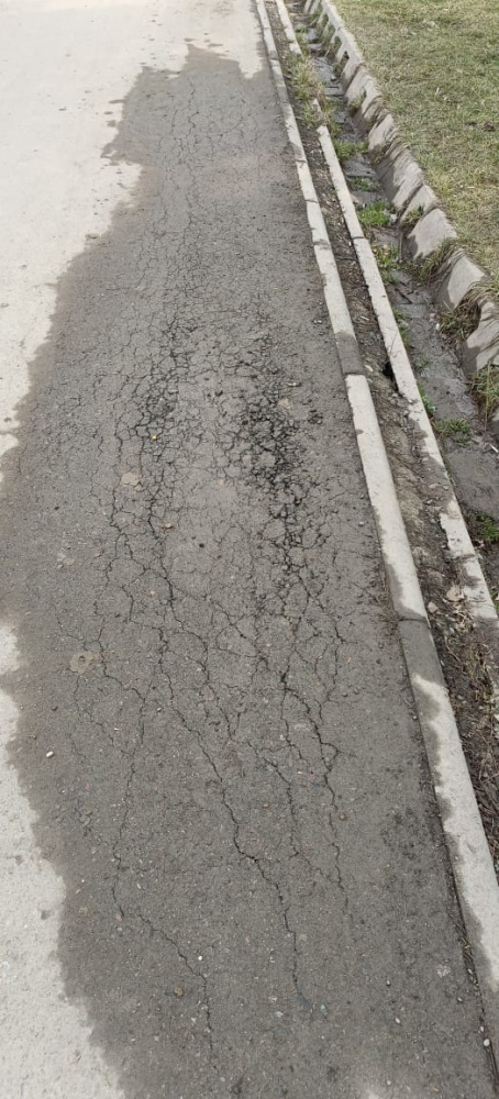 "Асфальтовое покрытие пришло в негодность, по нему идут глубокие трещины. Камни, установленные для барьера, вывернуты, из-за чего край дороги обваливается. Арычные лотки вдоль тротуара забиты и частично разрушены. Ходить здесь стало очень проблематично. Прошу ответственные службы принять меры по восстановлению тротуара на данном участке", - говорит она.