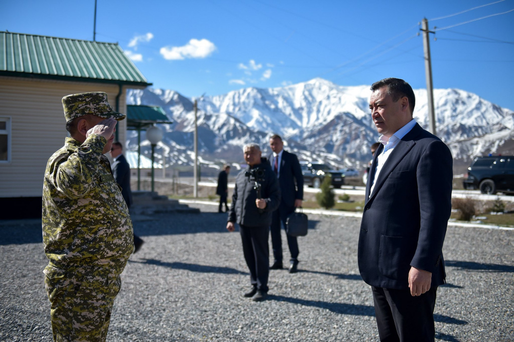 Президент Садыр Жапаров 13 апреля в ходе рабочей поездки в Ошскую область посетил пограничную заставу "Кара-Мык" в Чон-Алайском районе и ознакомился с проектом улучшения ее инфраструктуры.