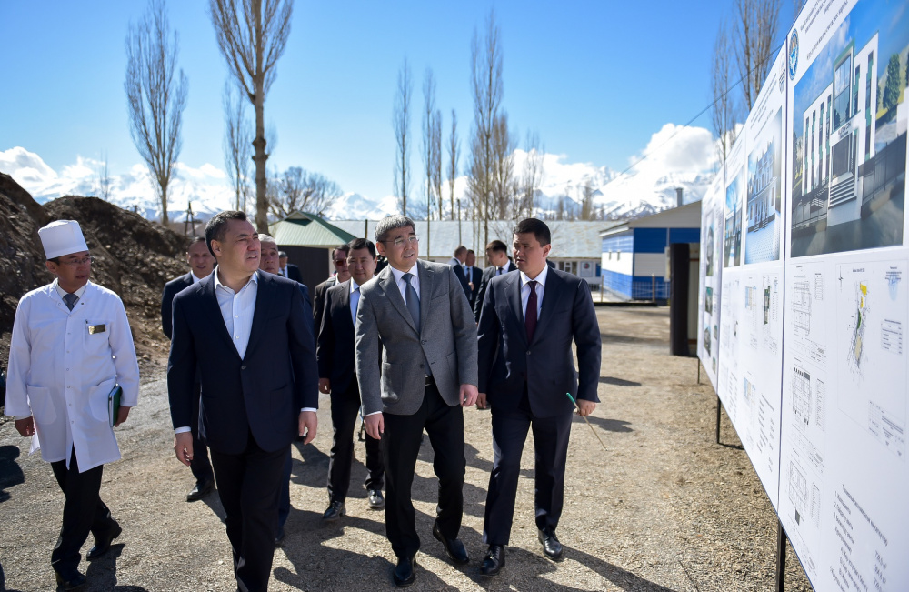 Садыр Жапаров осмотрел строительство инфекционного отделения в Чон-Алайском районе