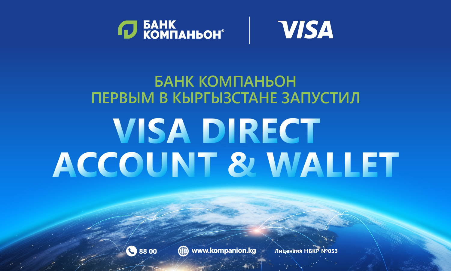 Банк Компаньон первый в КР запускает международные переводы Visa Direct