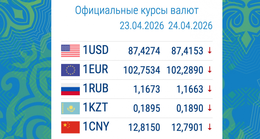 Курс иностранной валюты Нацбанка Кыргызстана на 24 апреля выглядит так:
