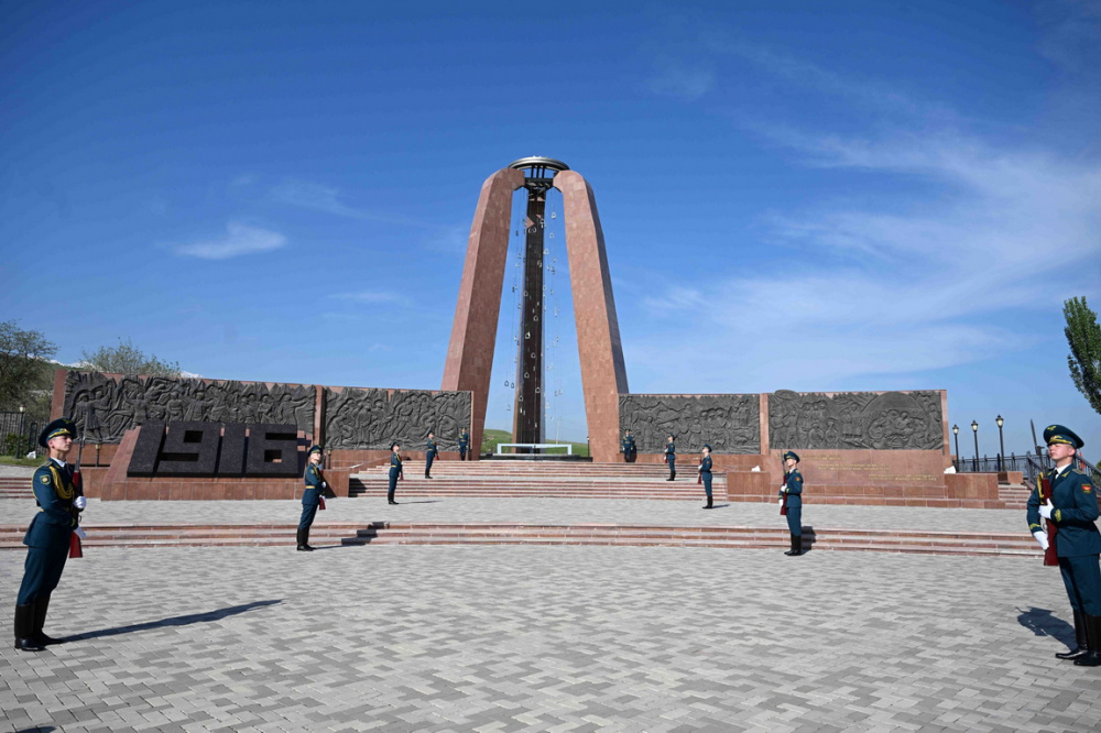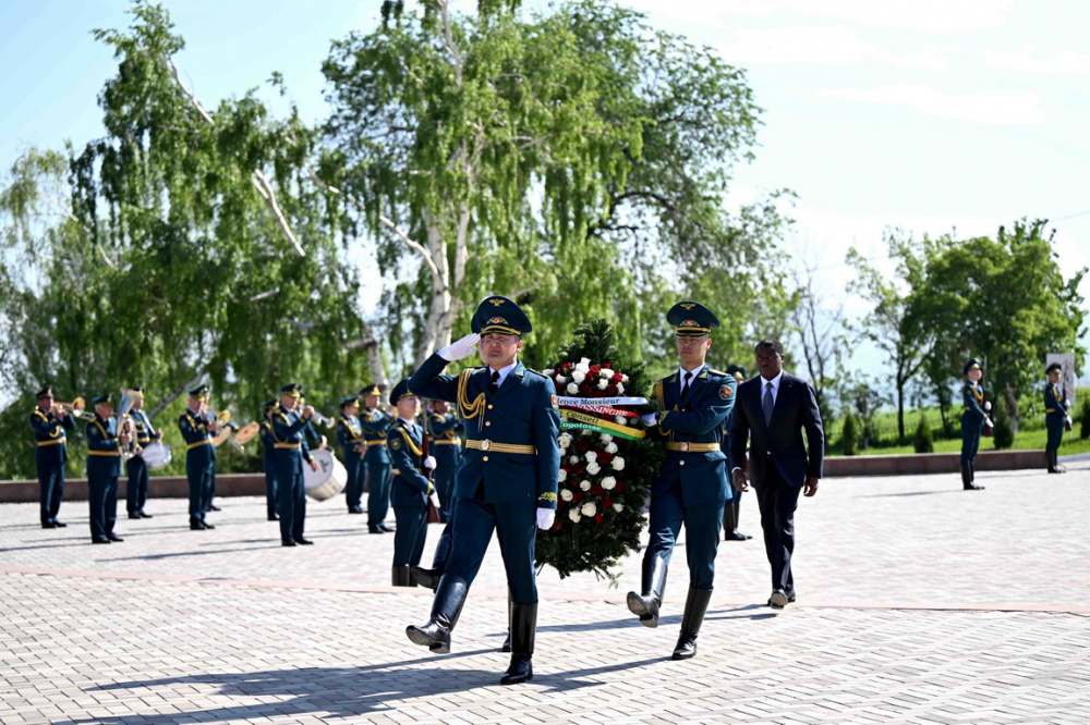 Сообщается, что Гнассингбе в сопровождении председателя кабинета министров Кыргызстана Адылбека Касымалиева возложил венок к мемориалу жертв трагических событий 1916 года.